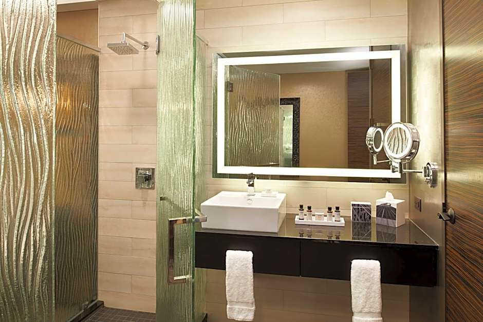 This suite features flat-screen satellite TV with Pay-per-view channels and an iPod dock. There is a sofa in the seating area as well.